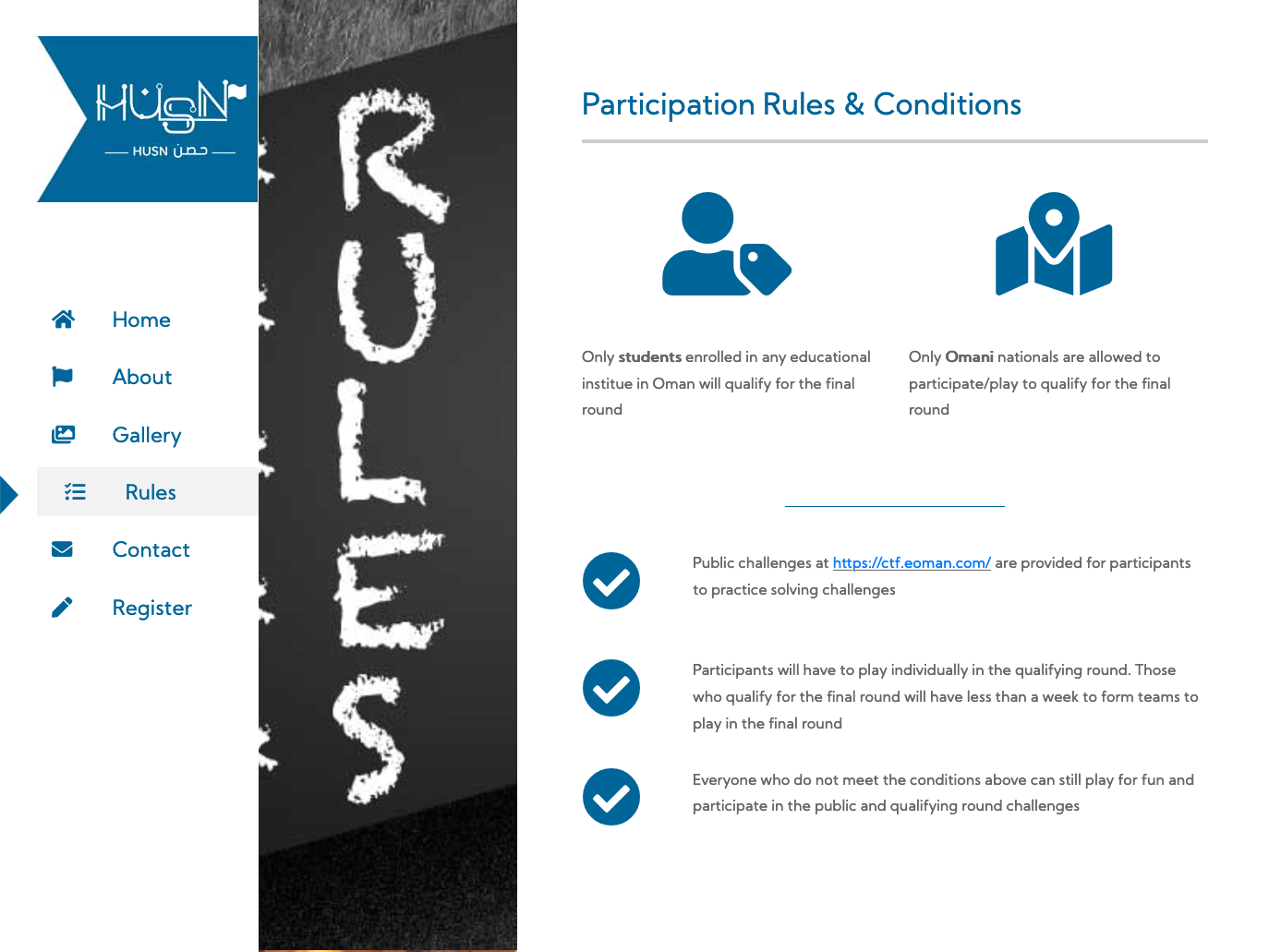 HUSN CTF is to be delivered to Omani students by the Department of Information Systems, College of Economics and Political Science at the Sultan Qaboos University, in partnership with the UK Oman Digital Hub. The UK Oman Digital Hub is a British Embassy Muscat initiative, committed to a collaboration between Oman and the UK with the aim of increasing the digital skill base in Oman.