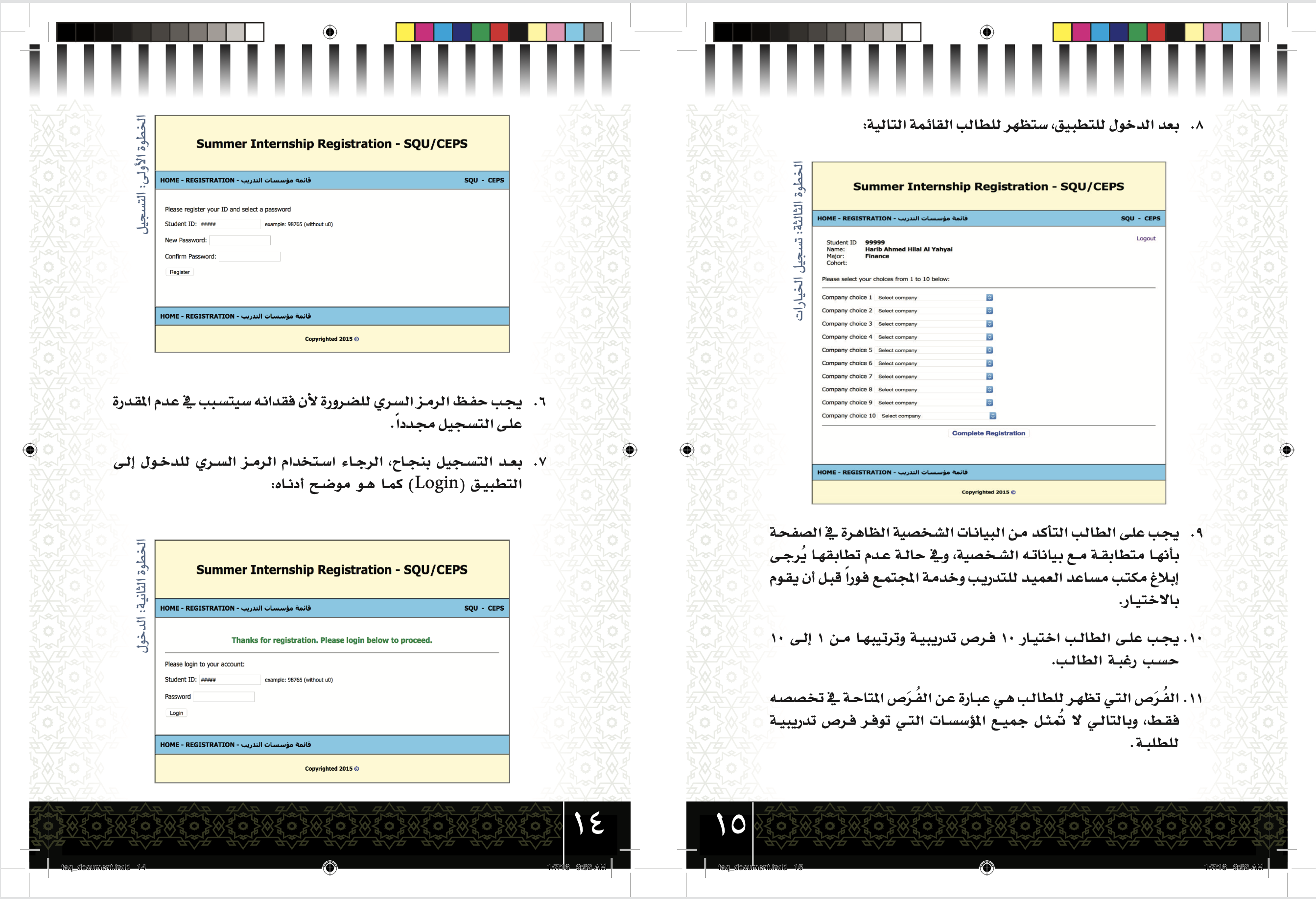 Technology Trends has designed the booklet for SQU students (CEPS) to guide them through the process of registering for summer internship.